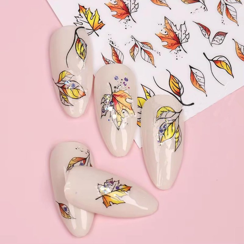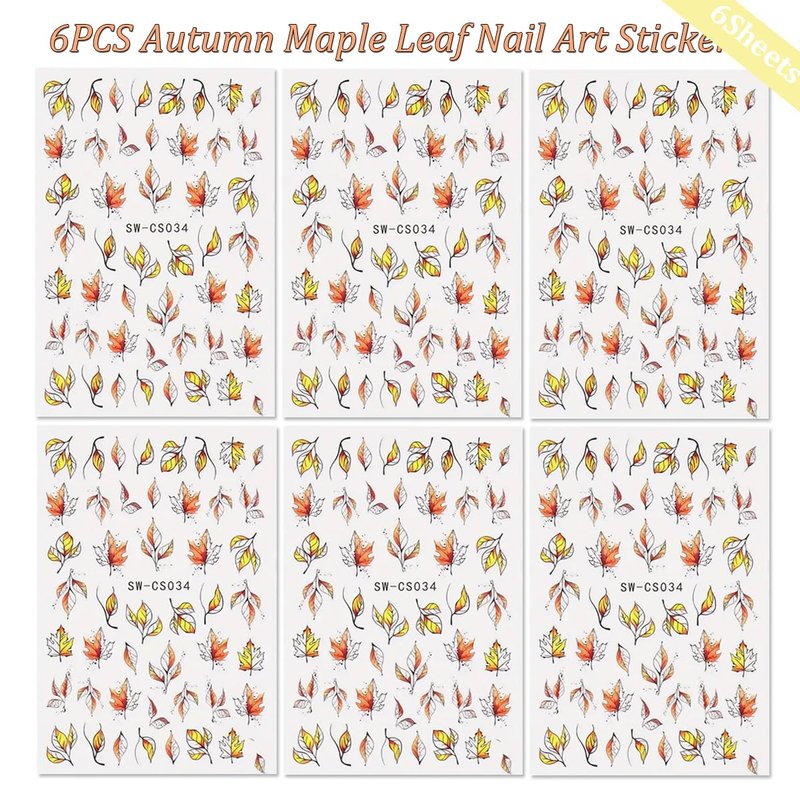 Halloween/Autumn Nail Stickers for Nail Art 3D Self-Adhesive Halloween Nail Art Decals for Acrylic Nails Manicure DIY Nail Art Decoration Accessories Specification: Item Type: 3D Self-Adhesive Fall Nail Art Stickers Decals Size: 2.5 x 3.54 inch/6.5 x 9cm Color: As the picture shows Quantity: 6 Sheets 3D Self-Adhesive Fall Maple Leaf Nail Stickers Manicure Decals How to use: 1. Clean nail surface. 2. Coat layer of nail with nail polish of your choice. 3. Wait for nail polish to dry completely. 4. Use tweezers to grasp nail sticker. 5. Put nail sticker on to nail surface. 6. Lightly press for 10 seconds. 7. Finish with top coat/clear nail polish of your choice to seal. Note: 1. Please keep them away from children to avoid swallowing. 2. The real color of the item may be slightly different from different monitors. 3. Please allow 1-2mm differences due to manual measurement. 4. If you have any questions, please kindly contact us. We will solve it for you within 24 hours. Thank you so much.