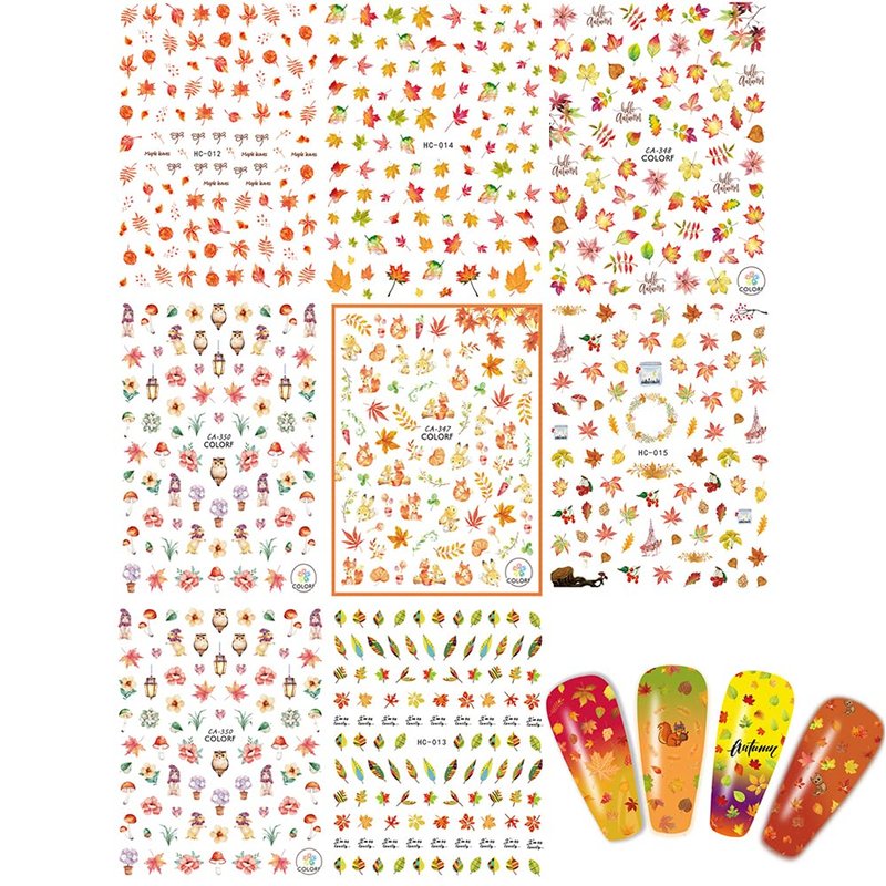 Package Includes: 8PCS Fall Nail Stickers for Nail Art