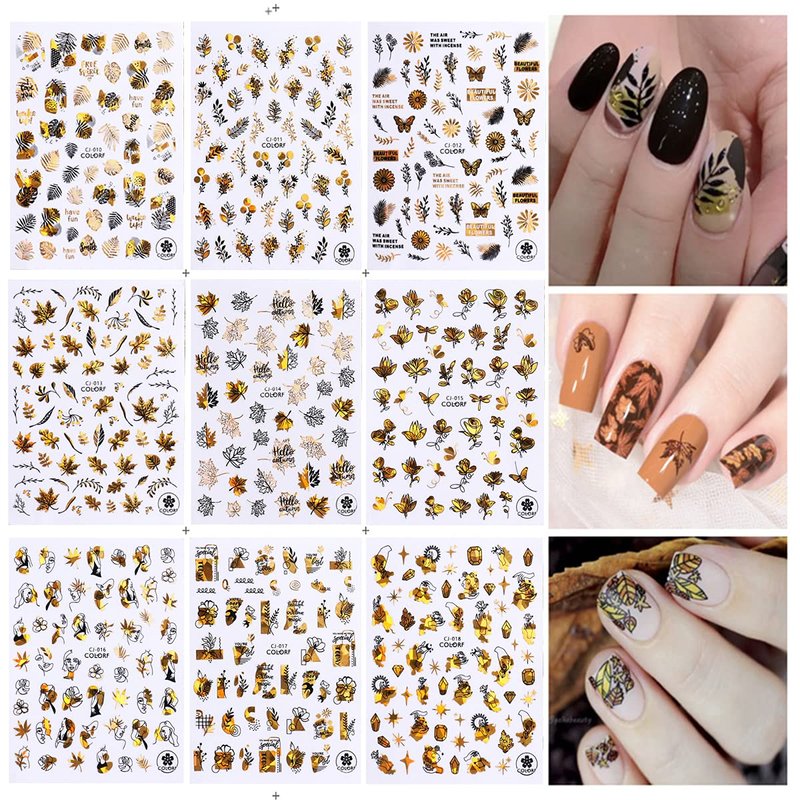 - 🍁Package – 9Sheets Thanksgiving Fall Nail Sticker in one set.There are maple leaf,rose,abstract face,leaf,butterfly,diamond patterns,satisfy your rich imagination of nail DIY