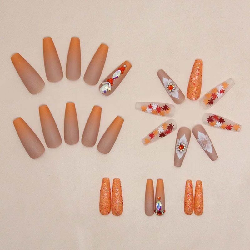- Easy To Use:Clean and polish your nails, choose a suitable size maple leaf press on nails, apply jelly glue, and then press on the nail for 30 seconds.no need to buy extra material to have get an square nails. avoid water within the first hour of wearing