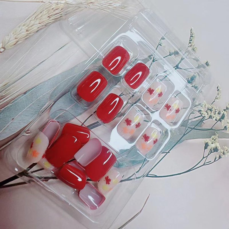 - Natural Effect: Autumn Maple Leaf Acrylic press on nails are made of ABS material, durable and elastic, can be modified to better fit your nail shape, the use effect is comfortable and natural.
