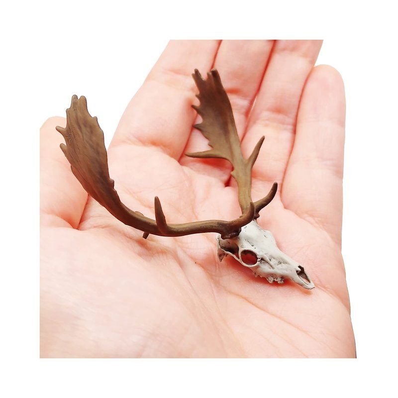 Fallow Deer skull with Antlers - 1:12 scale deer antlers skull for diorama, miniature horror, dollhouse decor, art supplies (1 skull) (Bone (hand painted), Cranium)