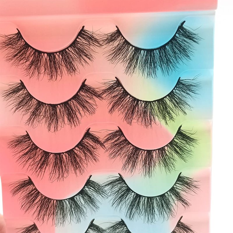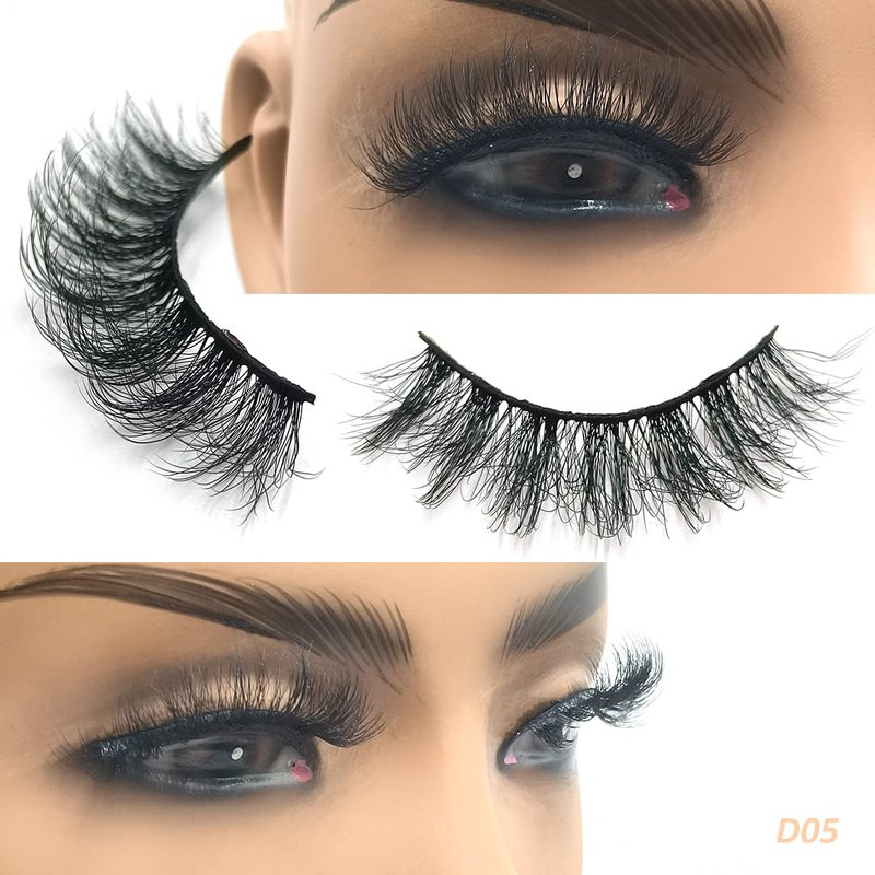 False Eyelashes 15mm Faux Mink Lashes 3D Natural Eye lashes Soft Wispy Curly Lashes Five Pairs (15mm D05)