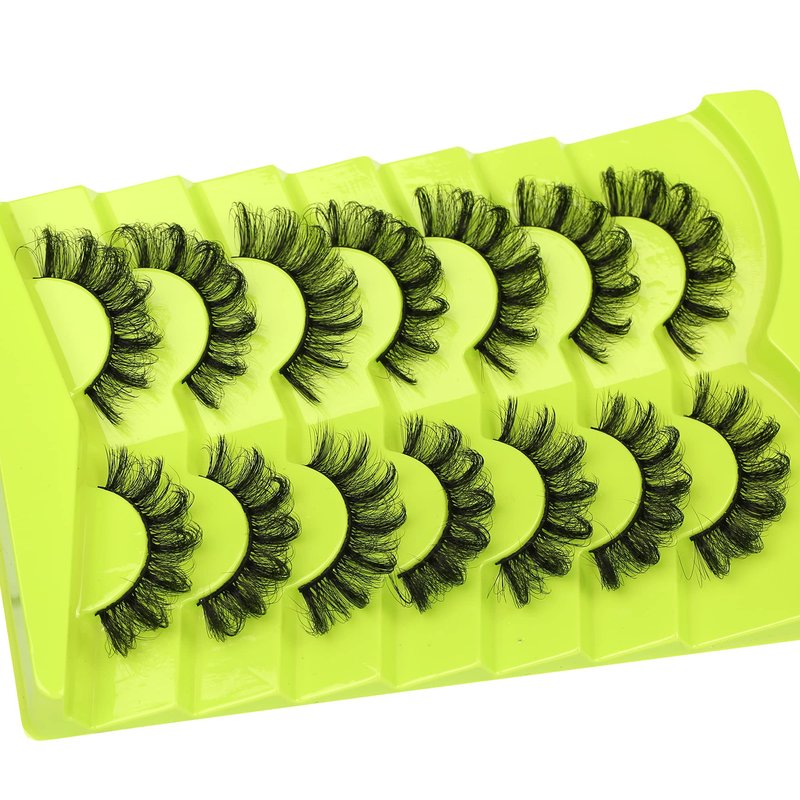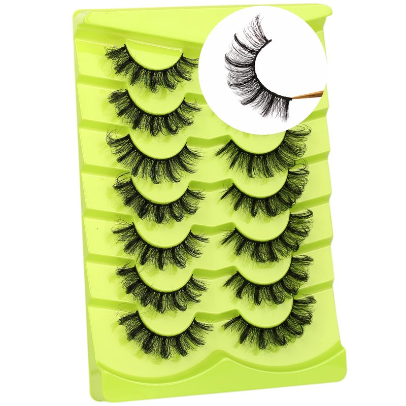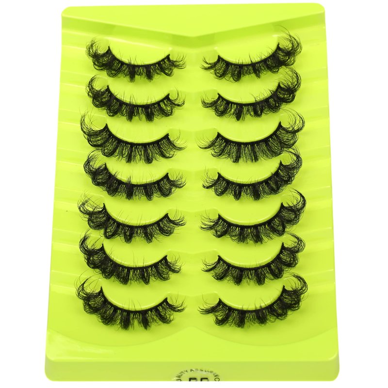 False Eyelashes Cat Eye Russian Volume DD Curl Strip Lashes Fluffy Faux Mink Lashes Wispy Lashes Dramatic Fake Eye Lash 7 Pairs Pack By Milllruez