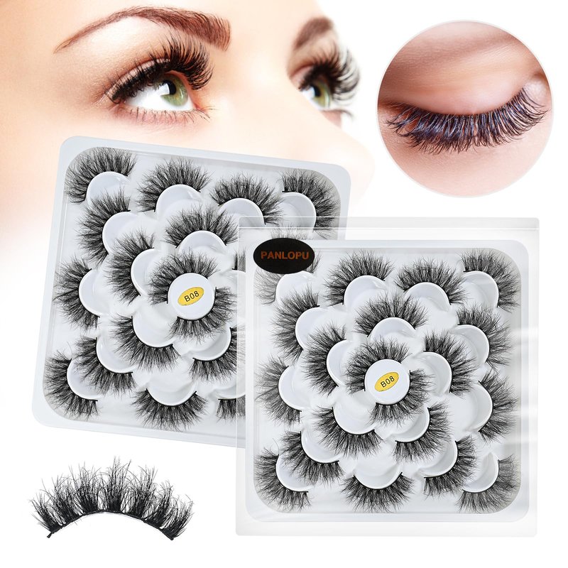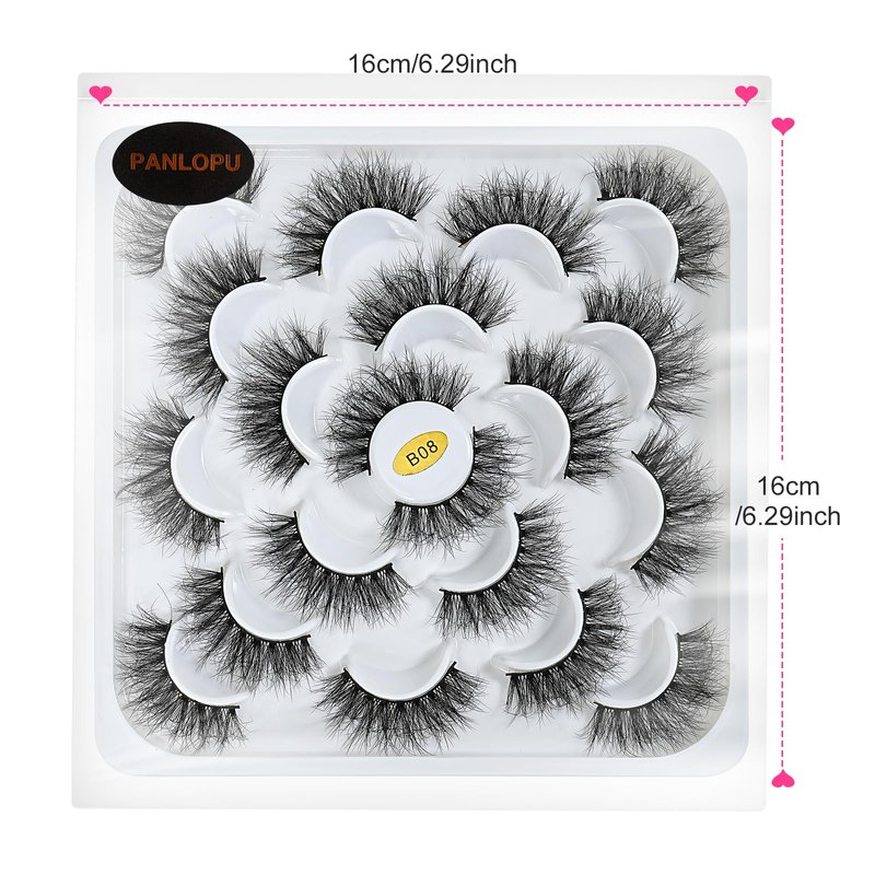 False Eyelashes Natural Look Synthetic Fibers Long Big Eyelashes Lashes Pack 10 Pairs by PANLOPU (B08-13x18x13mm)