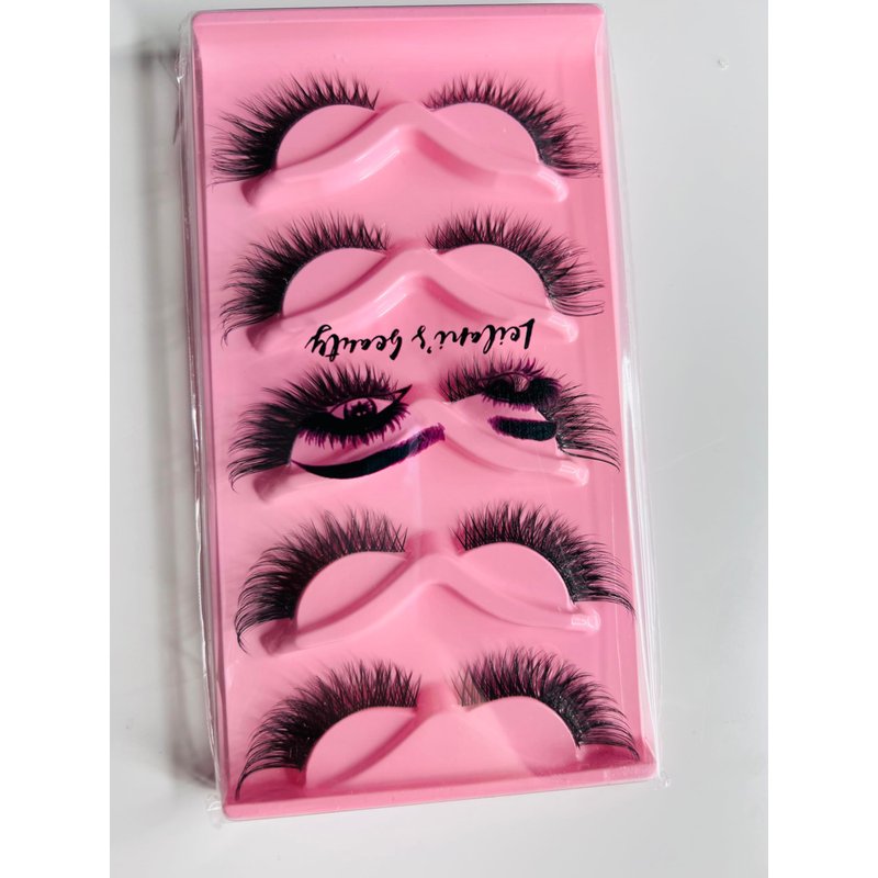 These delicate wispy eyelashes add natural yet glamorous volume and length. The soft faux mink fibers mimic the look of luxurious real mink lashes without the hefty price tag. The lightweight strips gently hug the lash line for a seamless blend with your natural lashes. Each set includes 5 pairs of long, fluttery lashes that can be reused multiple times with careful removal. Whether you're after a subtle lift or full glam drama, these lashes deliver beautiful definition to frame the eyes. At only $9.99 for 5 pairs, they offer impressive value and versatility for any look or occasion.