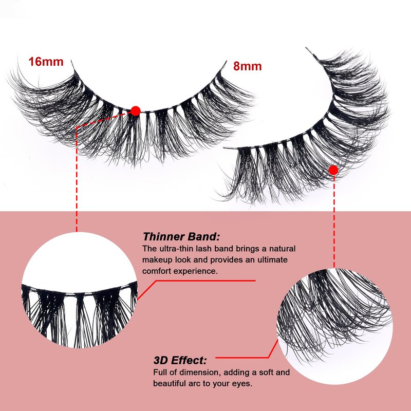 - 【ULTRA-THIN LASH BAND】:Invisible thin lash band is suitable for any color eyeline.The invisible lash strip blends perfectly with your lash line for a super comfortable fit.