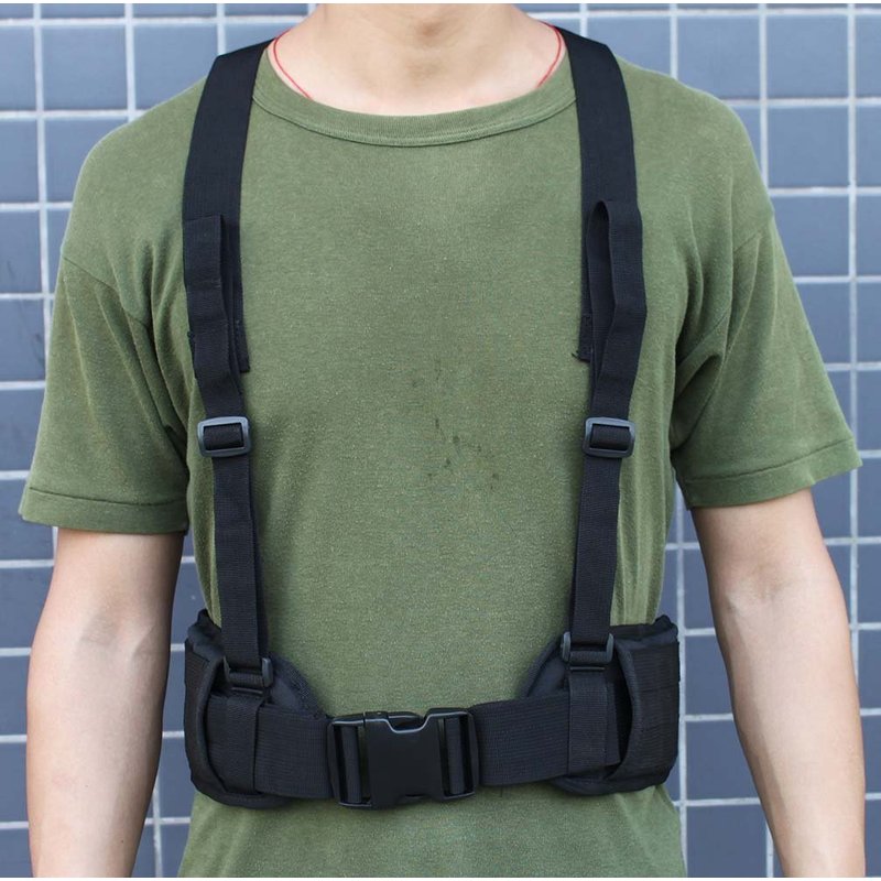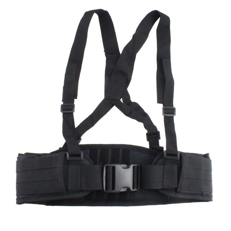 FAMI Tactical Battle Combat Airsoft Padded Equipment Molle Waist Belt with Adjustable Suspenders Free Straps for Patrol Army Training Outdoors Duty - Black