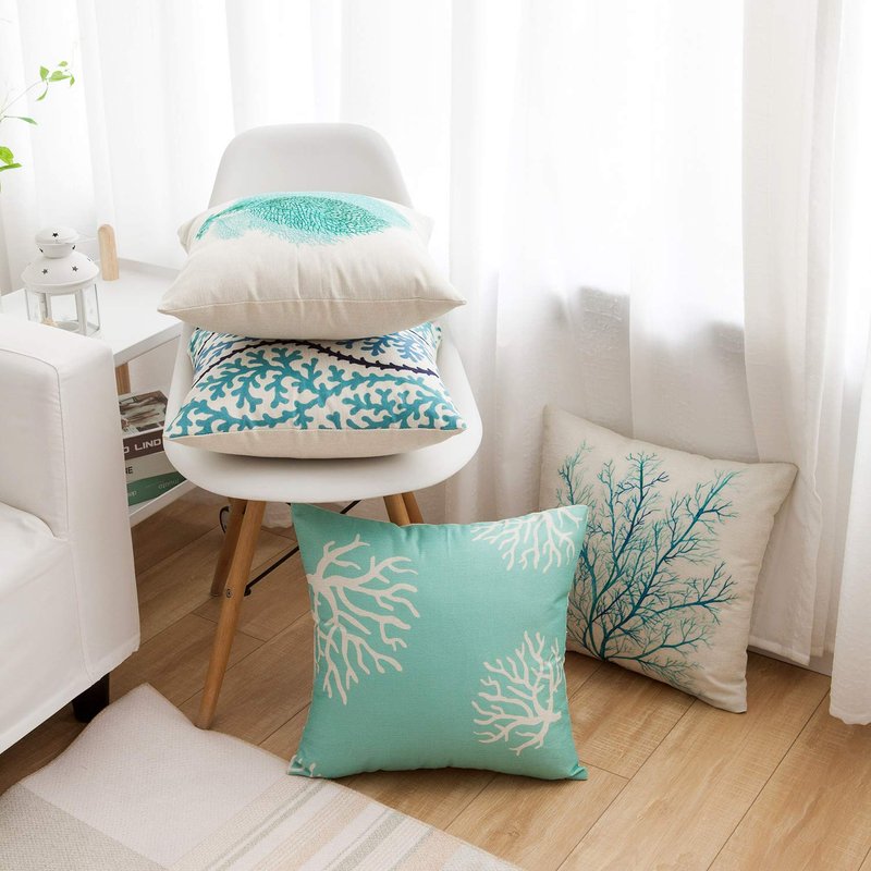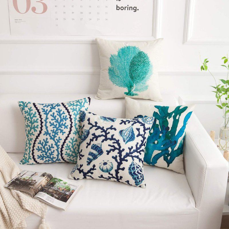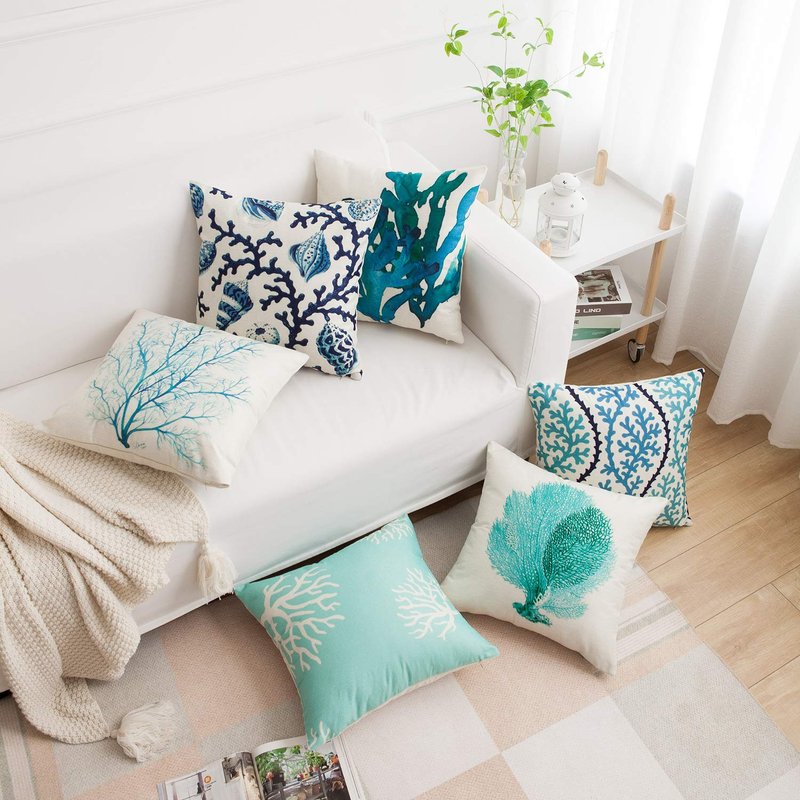 famibay Decorative Pillow Cover Ocean Park Theme Square Cotton Linen Throw Pillow Case Cushion Cover 18 x 18 (Ocean Theme-5, Pack of 6 18"x18")