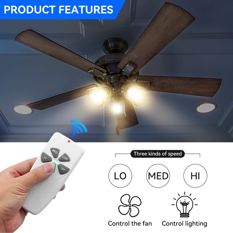 - 【 Button Operation Instructions 】 3-Speed (High/Medium/Low), Fan OFF and Dimming. Please note that this Remote does not have the button of reverse. Light dimmer button just controls the brightness of the incandescent lights and some dimmable LED lights. Most LED lights and all CFL lights are Not dimmable, light dimmer only supports the ON/OFF function in that case.