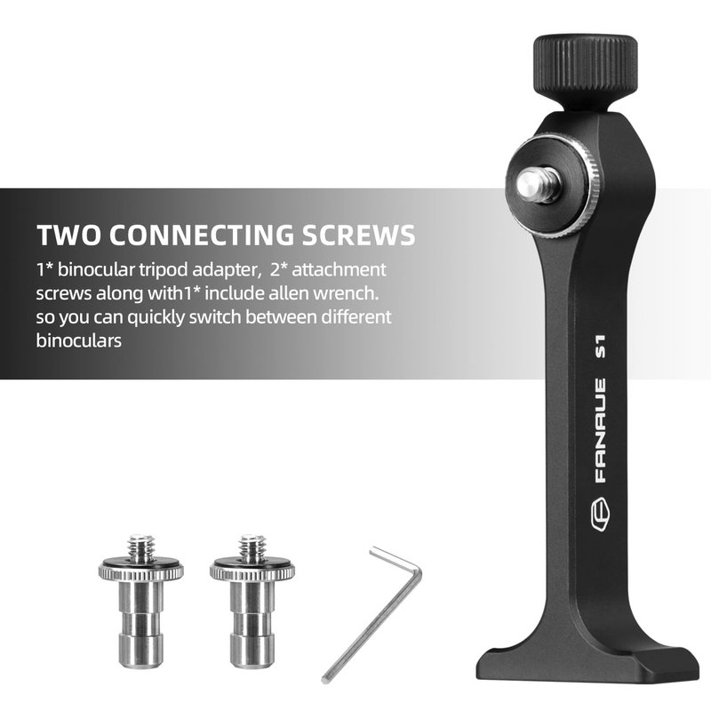 - 【2 CONNECTION SCREWS】1 binocular tripod adapter with 2 connecting screws,so that you can quickly switch between different binoculars.Additionally, it has an anti-safety unlock feature to prevent the telescope from accidentally slipping off.