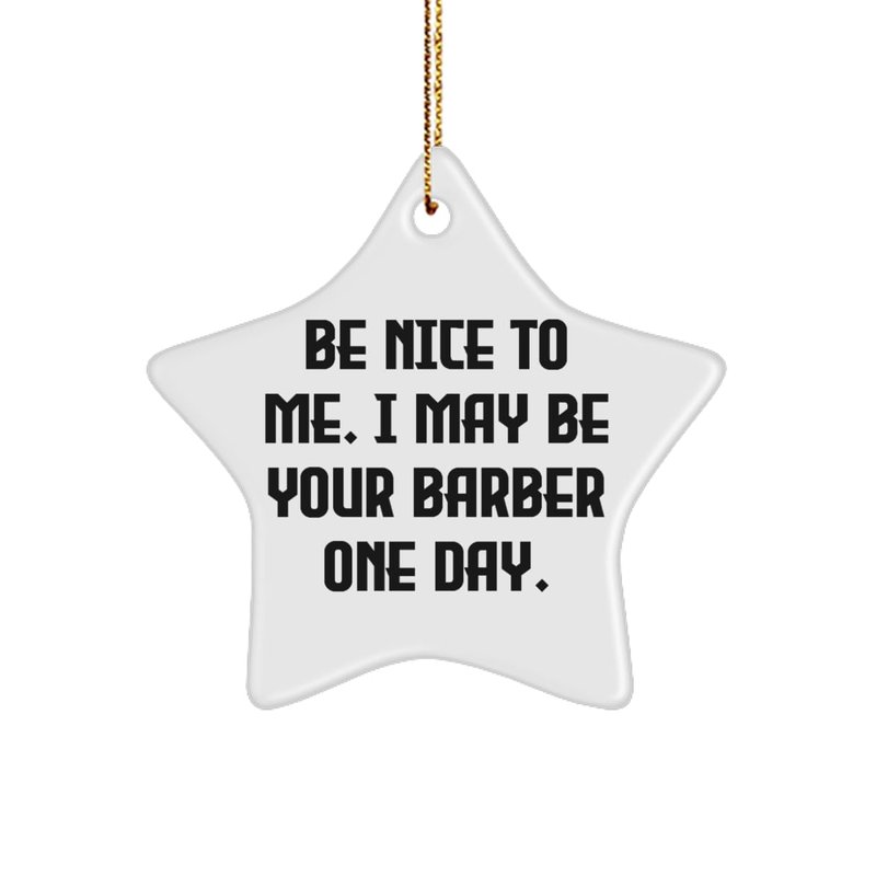 Fancy Barber Gifts, Be Nice to Me. I May Be Your Barber One Day, Birthday Star Ornament for Barber from Friends, Barber Supplies, Barber Tools, Barber Equipment, Barber Products