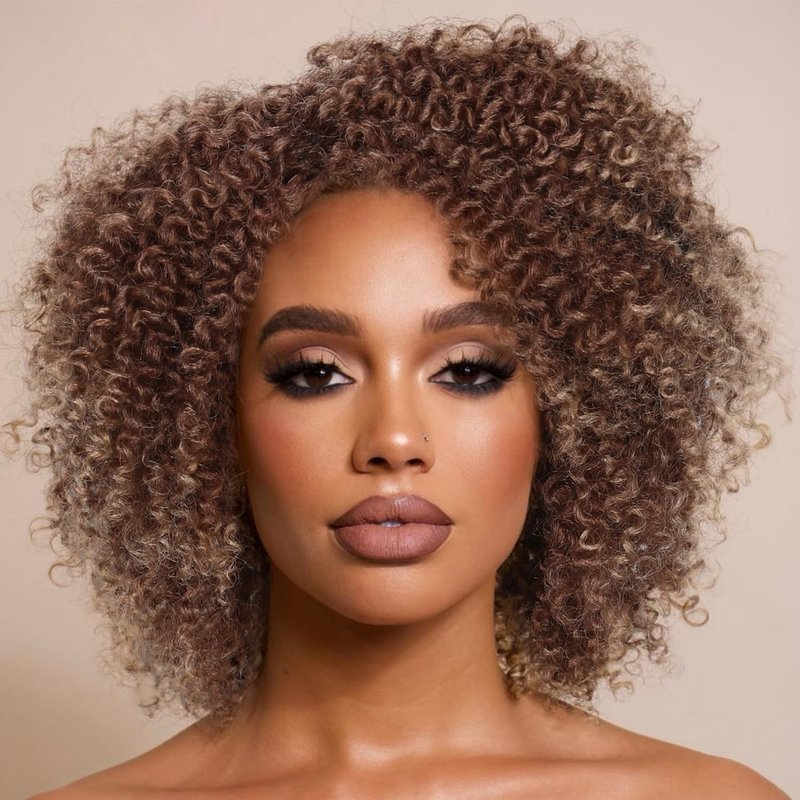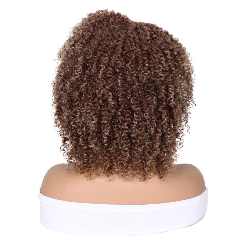 Fancy Hair Short Kinky Curly Wigs Brown Side Part Afro Wigs for Black Women Synthetic Yanky Twist Out Wig Natural Hairstyle for Daily Use (T30/27#)