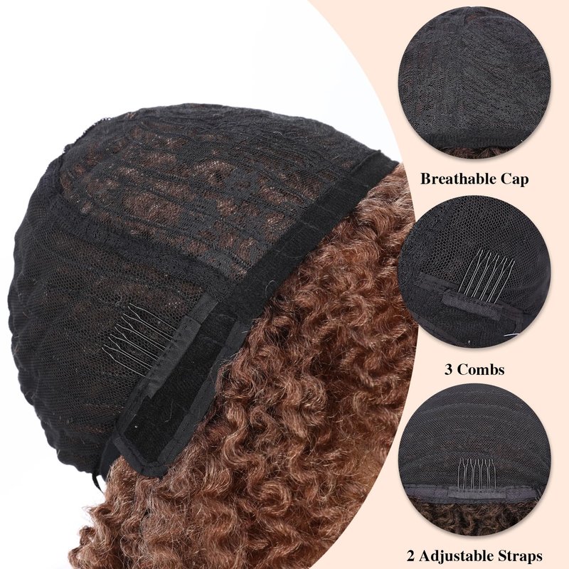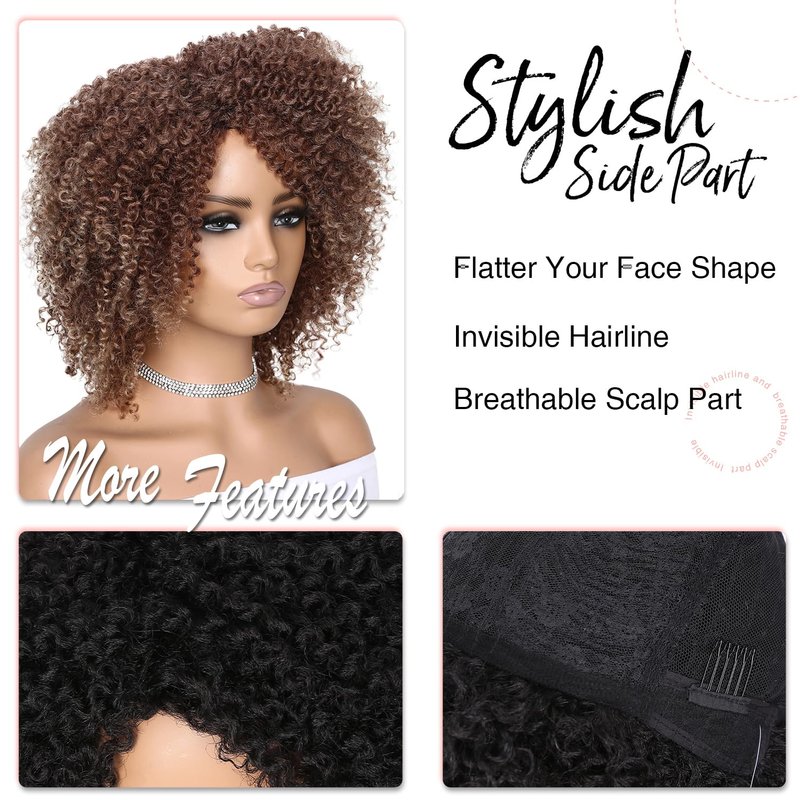 - 【Premium Synthetic Material】 Short Kinky Curly Wigs features 100% high-quality heat resistant synthetic fiber. Soft and lightweight. Not easy to tangle, shedding or itchy.