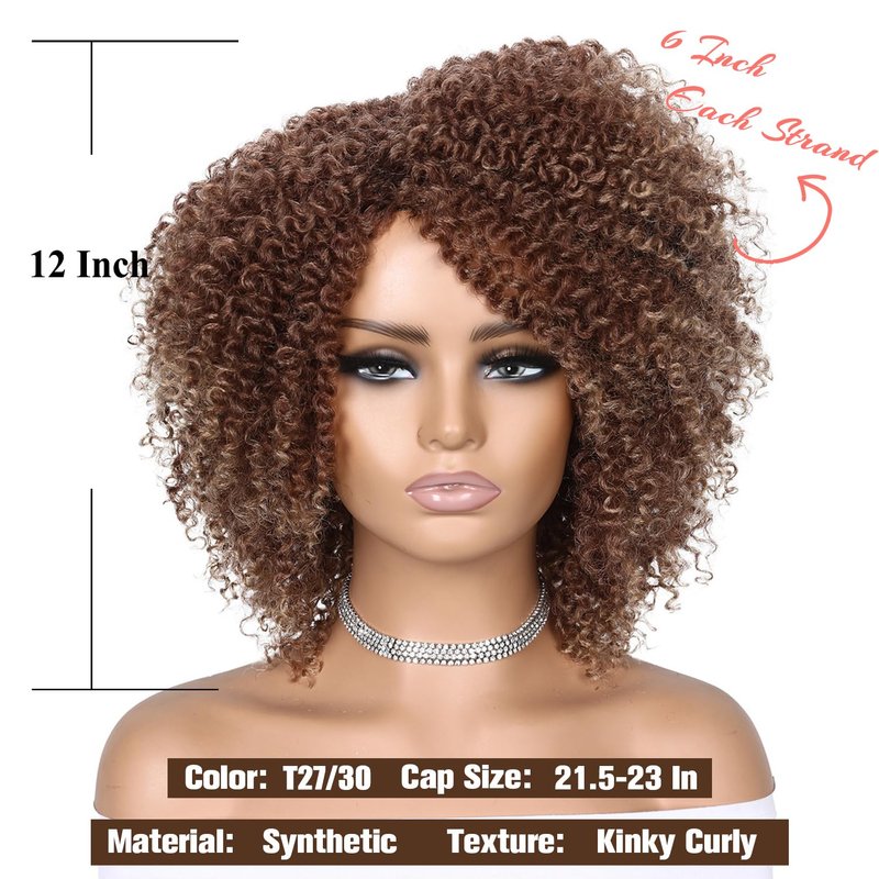 Fancy Hair Short Kinky Curly Wigs Brown Side Part Afro Wigs for Black Women Synthetic Yanky Twist Out Wig Natural Hairstyle for Daily Use (T30/27#))
