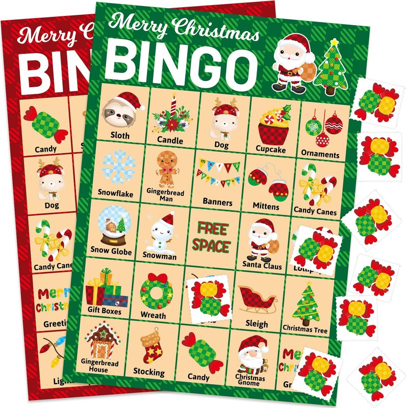 - Christmas Bingo Game for Kids: An easy game for kids to play; The holiday bingo game cards are full of favorite Christmas characters, such as Gingerbread men, Christmas trees, Santa Claus and so on; The plaid pattern is bright and colorful; They'll add a lot of fun to your Christmas parties
