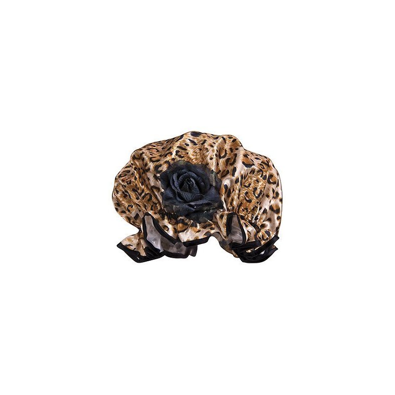 Fancy Leopard Shower Cap with Black Rose