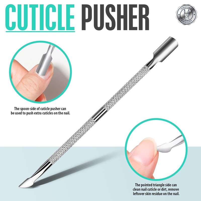 - 【Double-sided Nail Cuticle Pusher】--One side is triangular design, which is very suitable for removing residue and the dirt under nails. Another side is spoon-shaped cuticle pusher, which is the best helper for removing the nail decorations on the nail surface or removing the nail gel or polish residue. It can also be used for pushing, designing and shaping the cuticle, then use cuticle nippers to remove the cuticle.