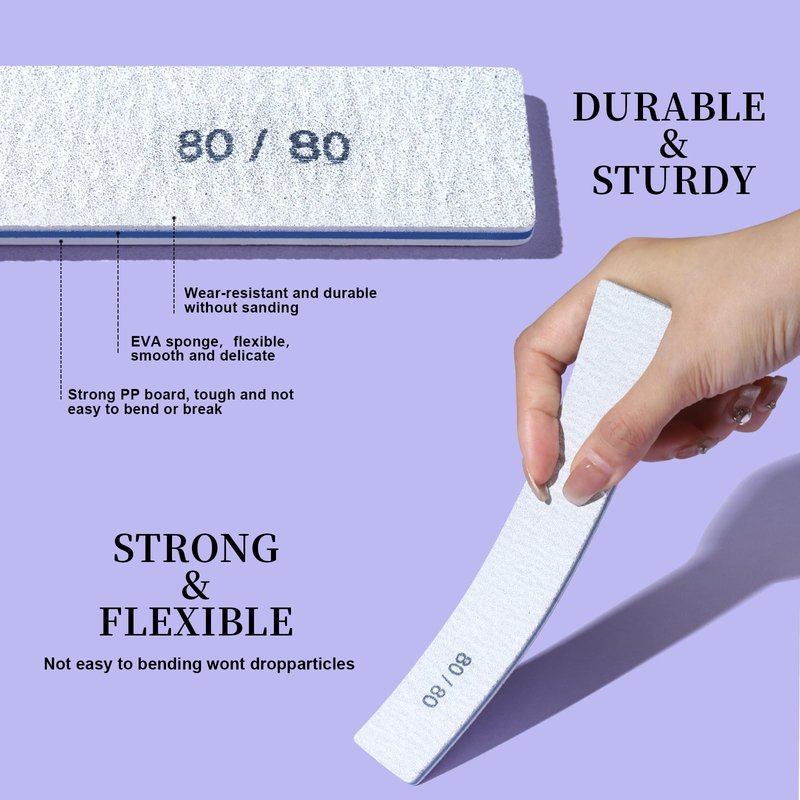 - High Quality Nail Files: Made of premium emery board materials, wear-resistant and without sanding. Strong PP board material, tough and not easy to bend or break. EVA sponge, flexible,smooth and delicate. Double-sided waterproof adhesive, quickly dry and the sand surface will not wrinkle, can be reused many times. Strong and flexible.