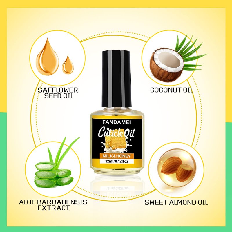 - Milk and Honey Nail Cuticle Oil: Made of high quality natural ingredients, a variety of vitamins, softens and strengthens the cuticles and nails. Anti-oxidation, moisturize the nails and cuticle skin. And amazing light and sweet fragrance helps to relax and give you a good mood. You can use it as a daily nail treatment and we also recommend to use when you finish the manicure or after removing gel nail polish.