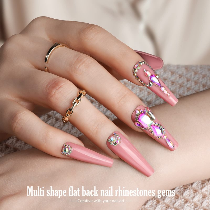 - Press On Nails Kit: Package includes: 13 colors 312 pcs glossy press on nails long coffin, 40 pcs multi shape flat back nail rhinestones gems, 250 pcs small round flat back nail art rhinestones, 2pcs nail butterfly stickers, 7g false nail tips glue, 1pcs orange nail sticks and 1pcs 100/180 nail file. You can DIY the press on nails with nail art rhinestones and nail art stickers to create multiples patterns and styles. You nail art DIY will be easy, fun, beautiful and varied.