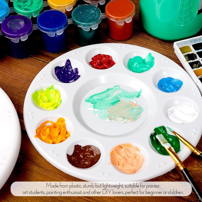 - 【White Round Paint Tray Palettes for Kids & Adults 】--What you will get: 4 x plastic paint pallets|Made from plastic, sturdy and durable, smooth surface and edge, not easy to be broken or damaged. The outstanding quality make it could be used for a long time, save your money.