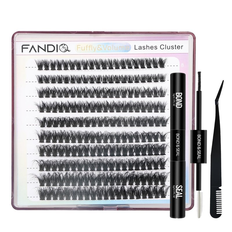 - ☘️【Fluffy D Curl Lash Clusters Kit】-FANDIQ DIY lashes extension kit includes 200pcs individual lashes,1* double head lash bond and seal and 1*lash tweezers ,offering all you need to DIY eyelash extension at home! Affordable and Save your time and money!
