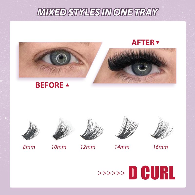- ☘️【DIY as Your Perference at Home】-Upgrade 8-16MM wider fulffy Individual Lashes are different from normal D curl individual lashes,This individual eyelashes kit have volume shape, using the fluffy lashes can help you get a dense eyelash extension appearance. Easy application!