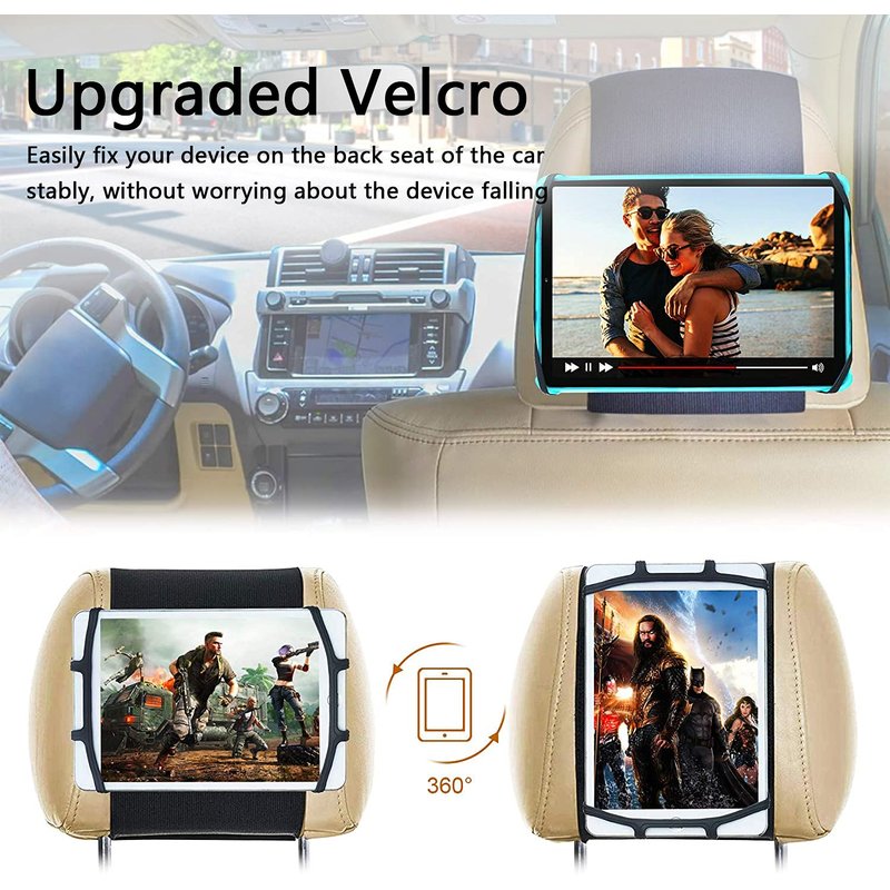 - 🚓NEW Upgraded Car Headrest Mount - Fit for all 7 -12.9" Tablets🚓①The car tablet holder uses a new Upgraded material rubber. After up to 100 repeated tests, the rubber has high elasticity and is durable and firm. ②The upgraded V*elcro has high-strength stickiness, and the force-bearing area of the V*elcro is increased, which can better fix your device on the back seat of the car stably, without worrying about the device falling or being unable to stabilize your device.