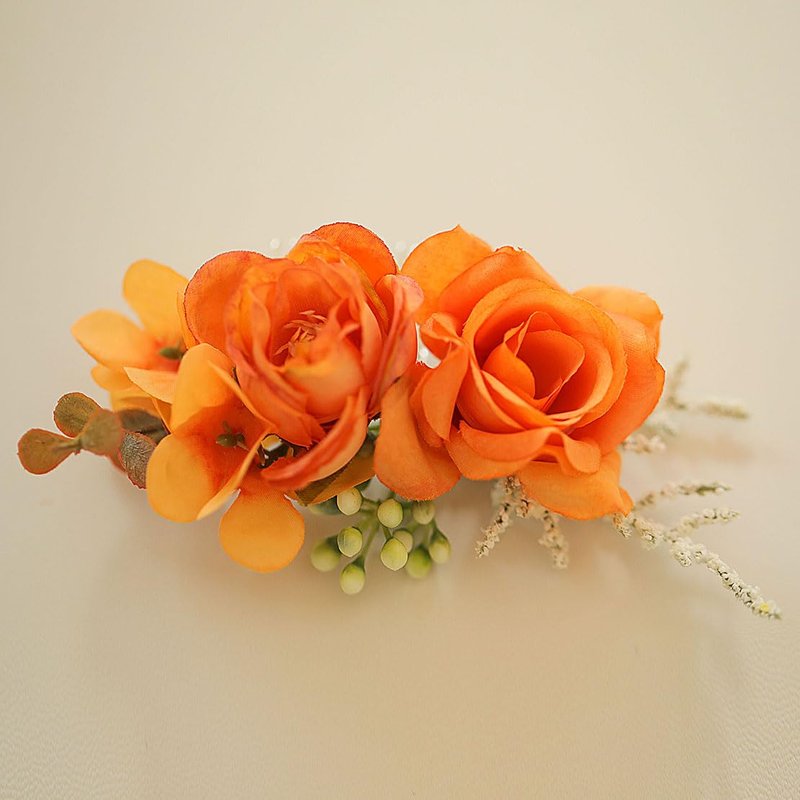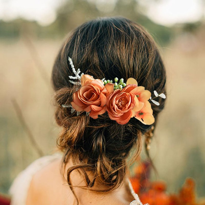 Fangsen Boho Autumn Wedding Silvery Orange Rose Bridal Headpiece Christmas Festival Headpiece Women Girls Party