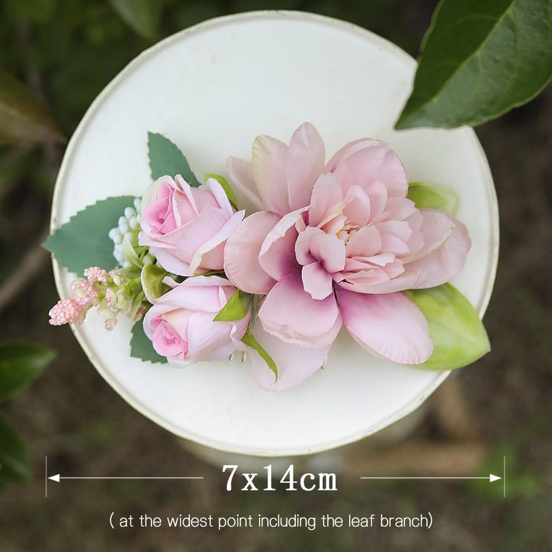 * Material: silk flower,3 flowers and 1flower buds, green plants and hair comb.