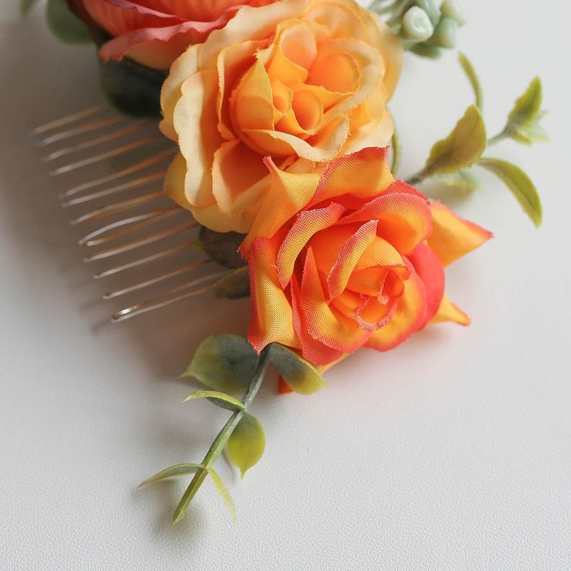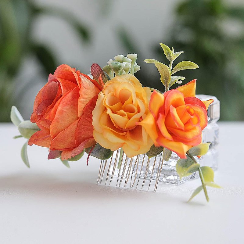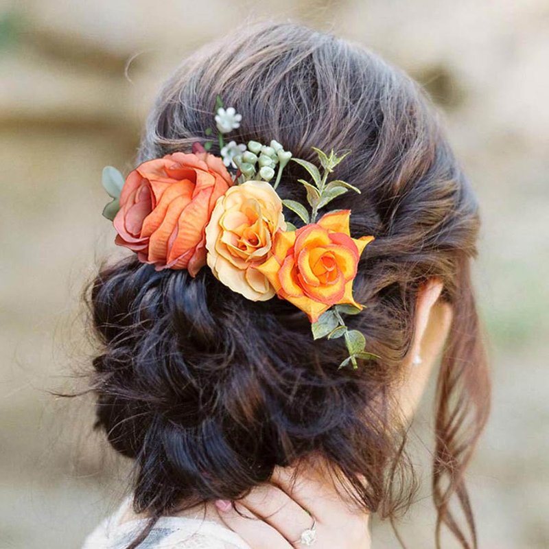 Fangsen Wedding Boho Orange Rose Flower Hair Clips Floral Hair Accessories for Brides and Bridesmaids Silver