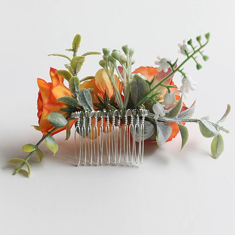 * Material: silk flower,3 flowers and 1flower buds, green plants and hair comb.