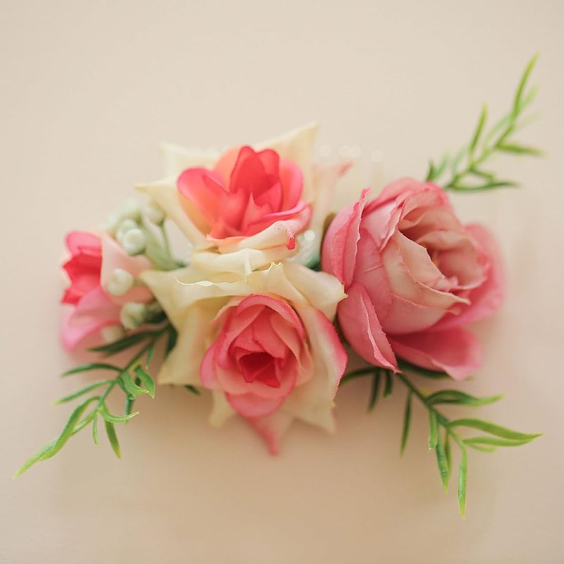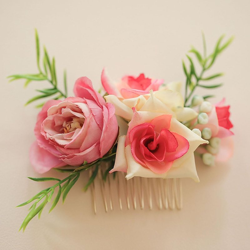 Fangsen Wedding Boho Pink Rose Flowers Floral Comb With Hair Clip Hair Accessories Floral Hair Headpiece