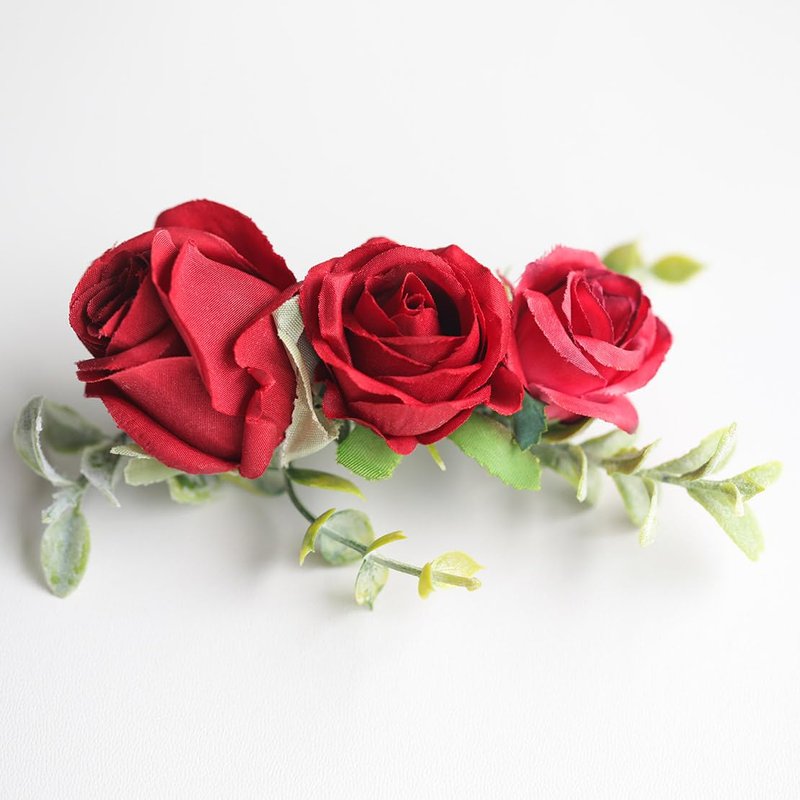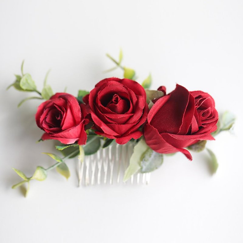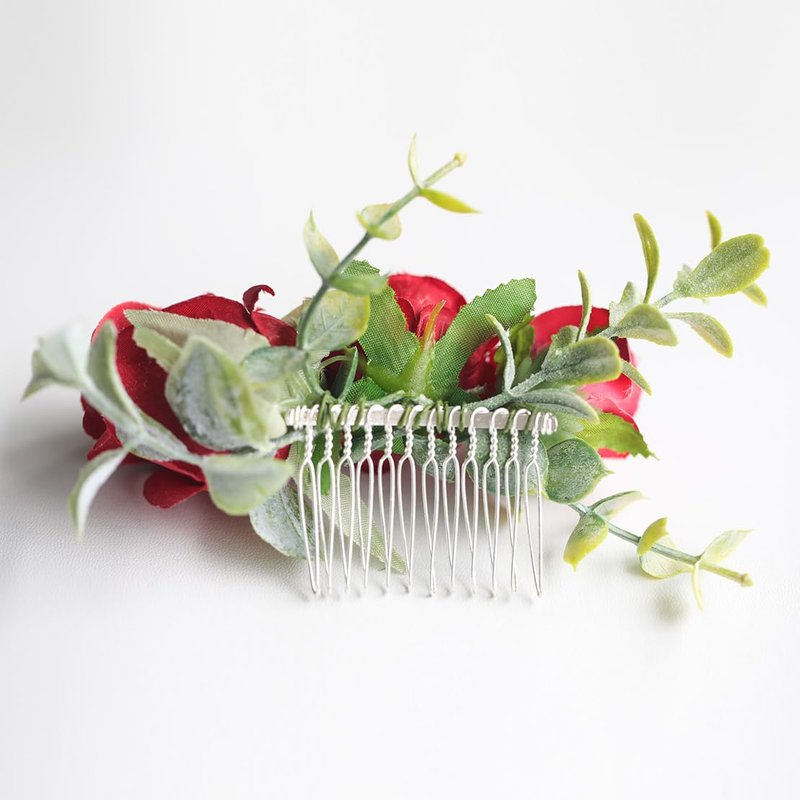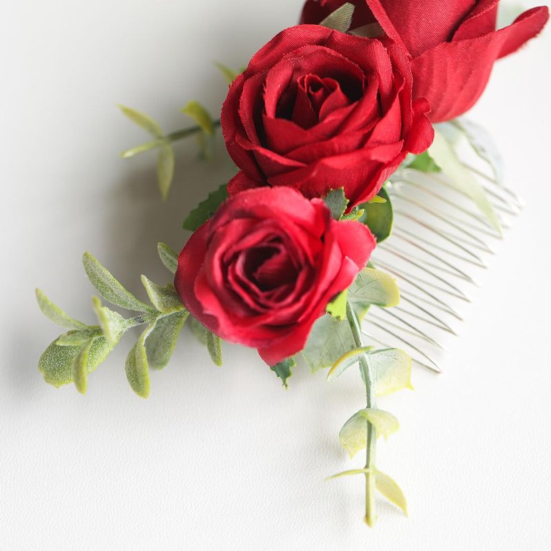 Fangsen Wedding Boho Red Rose Buds Flower Hair Clips Floral Comb With Hair Piece and Hair Vines for Brides and Bridesmaids Silver