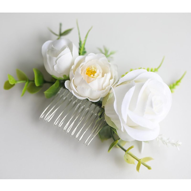 * Material: silk flower,1 flowers and 2 flower buds, green plants and hair comb.