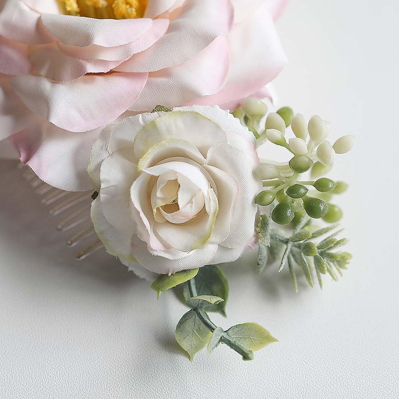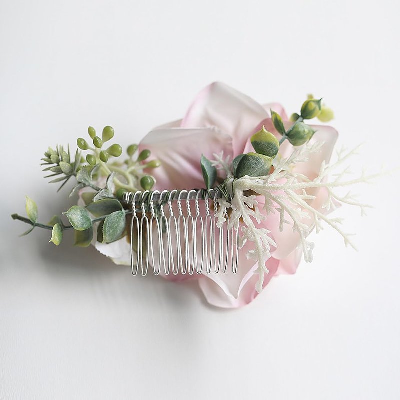* Material: silk flower,2 flowers and 1flower buds, green plants and hair comb.