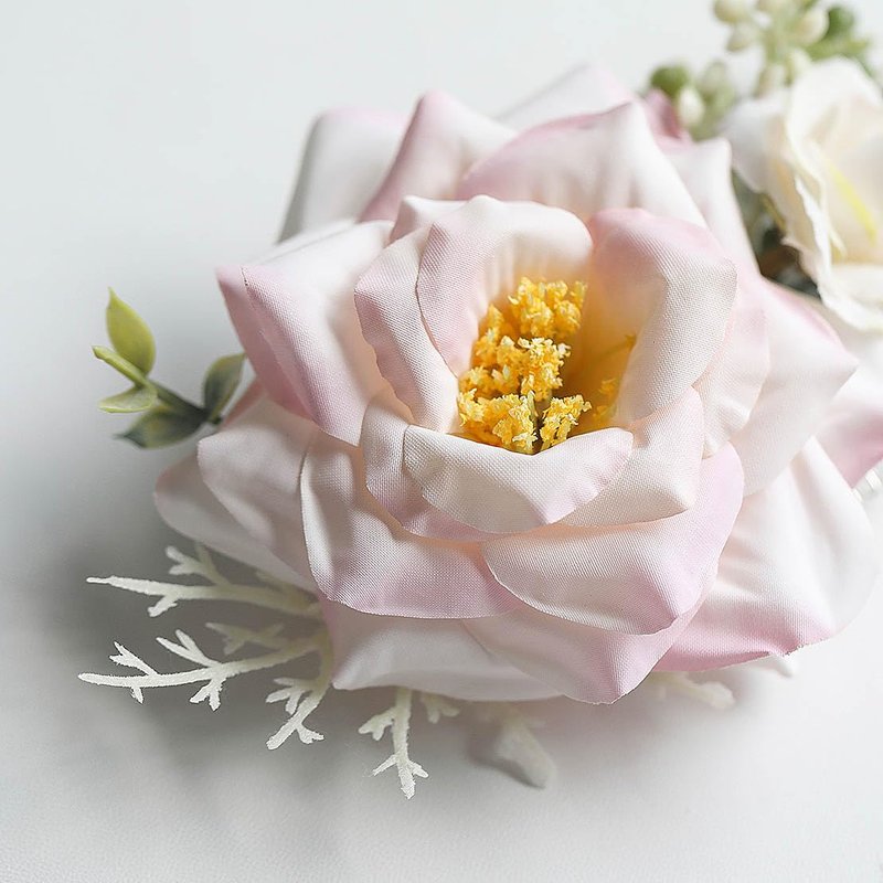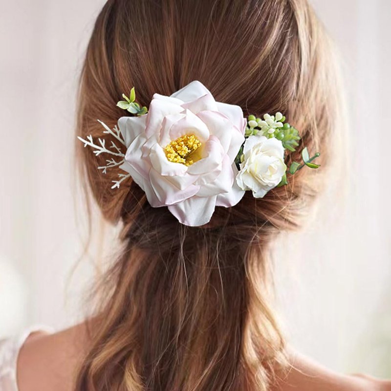 Fangsen Wedding Boho White Rose Flower Hair Clips Floral Hair Accessories for Brides and Bridesmaids Silver (Pink)