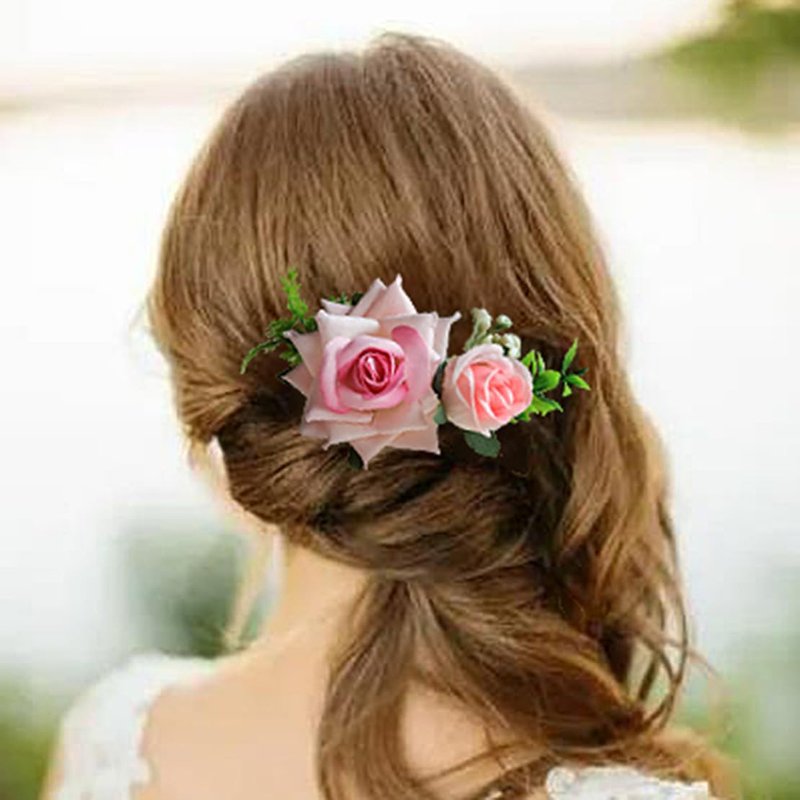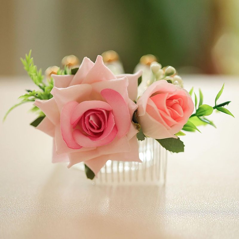 Fangsen Wedding Pink Flower Hair Comb Clips Wedding Floral Headpiece Hair Accessories for Brides and Bridesmaids