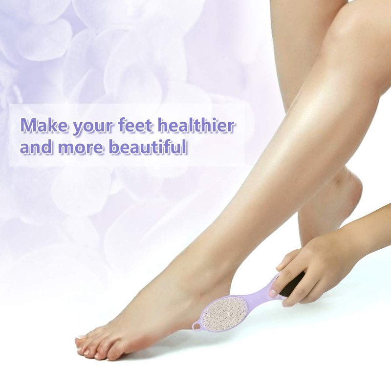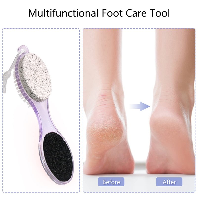 - 4 in 1 Multifunctional Design: Innovative foot tool has 4 different surfaces to make it easy to take care for your feet.Brush pumice stone works on both dry and wet foot surfaces that allows the user maximum control and comfort.