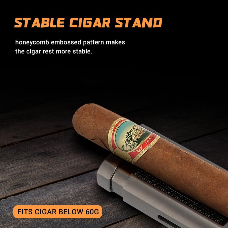 - 🔥Sturdy & Stable Cigar Rest🔥 The honeycomb embossed pattern on the back of this cool lighter creates a sturdy and anti-slip cigar rest, making it a great cigar accessory. The diameter of this cigar rest is 0.9inch, suitable for cigars below 60G.