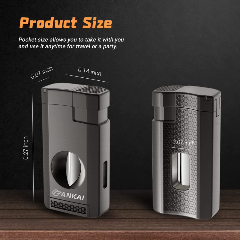 - 🔥Upgrade Deep V Cigar Cutter🔥 This butane lighter features a deeper V cigar cutter than our last model, making it even more useful for cigar lovers. The sharp cutter can handle cigars with a ring gauge up to 60.