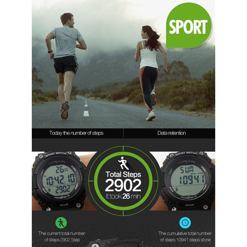 - 【Multifunctional Watch】: This watch is very attractive, especially for men who like sports. Auto Date, Alarm,Water Resistant,LED display,Shock Resistant,Stop Watch,Back Light, Pedometer, Shock Resistant, 50M Water Resistant. These functions are useful for exercising. Shockproof, Stopwatch, Waterproof Great for outdoor and indoor sports like running, rock climbing, fishing, etc.