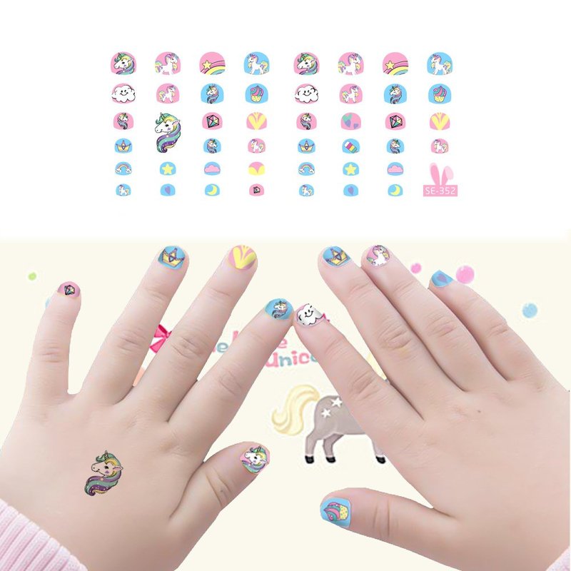 Fanoshon Cute unicorn Kids Nail Stickers are with bright colors and great variety, rainbow unicorn, star, moon, crown etc.A huge hit in kids party.