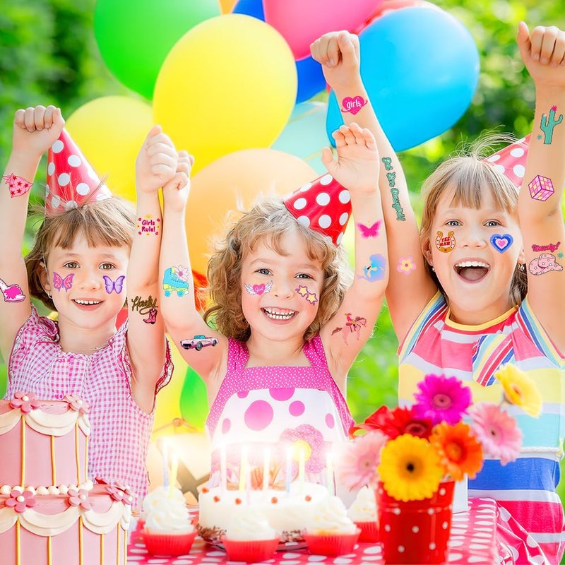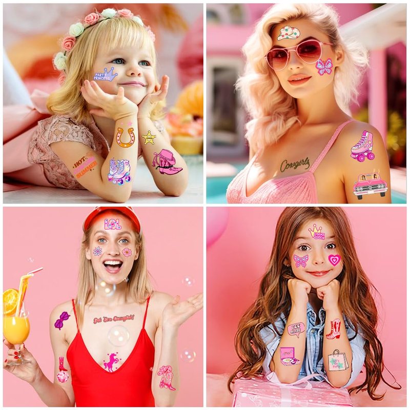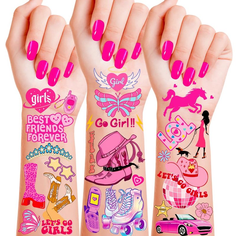 - Valuable Party Accessories Or Gifts for Kids Girls: 20 Sheets of pink temporary tattoos are enough for girls to decorate themselves or used as birthday parties gifts, slumber party, gift bag fillers, Easter goodie bags fillers, Halloween body decorations, Christmas gifts, beach pool party girls, School class prizes award, pinata fillers, princess party, pink party supplies