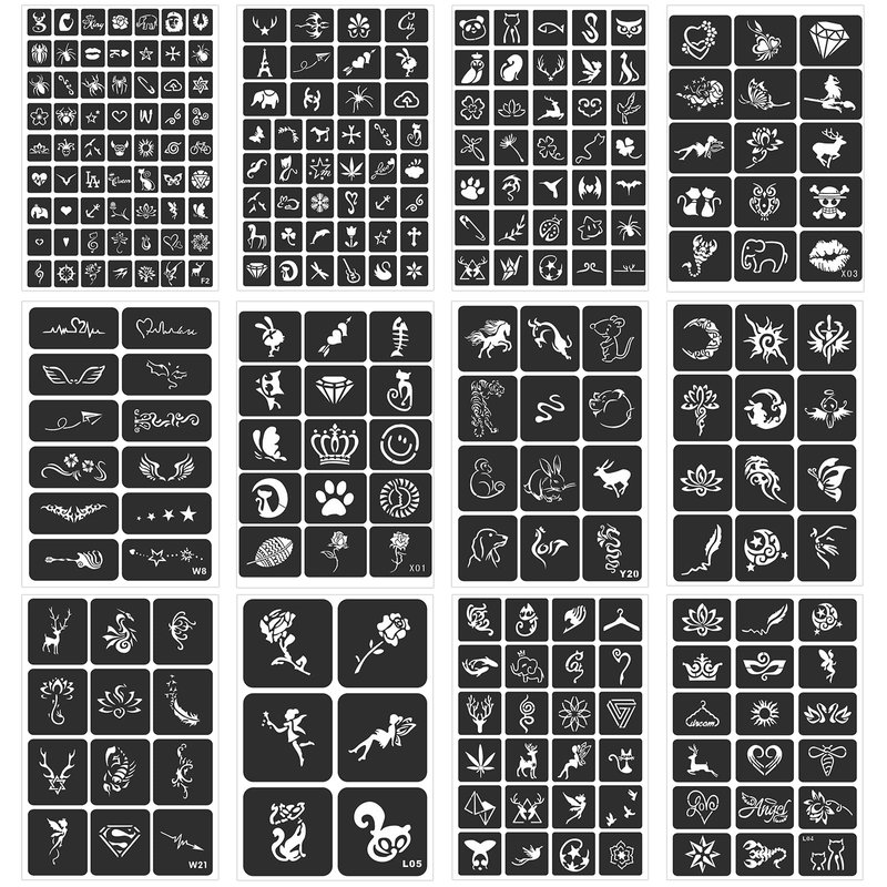 - ⯁Easy To Use: Clean your skin, choose your favorite tattoo design, stick the tattoo template on your body parts. Apply henna paste, or maybe glitter powder too. Wait for it to dry, tear off the tattoo template after drying, and you can see the effect of the tattoo.