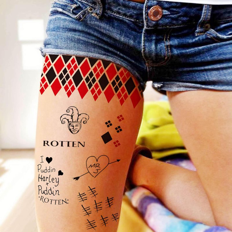 - 💖【6 Sheets 3D HQ Joker Temporary Tattoos For Men Adults Women Various Designs】FANRUI Brand Joker Tattoos For Adults Women. Package Includes 6 Sheets Joker Hands Tattoos Clown Halloween Costume Accessories Prison Rapper Ghost Prisoner Scary Smile Face Gothic Tattos Inmate Stickers Etc. Popular Fake Tattoos For Women Men Body Art And Add A Sense Of Fashion In Life.