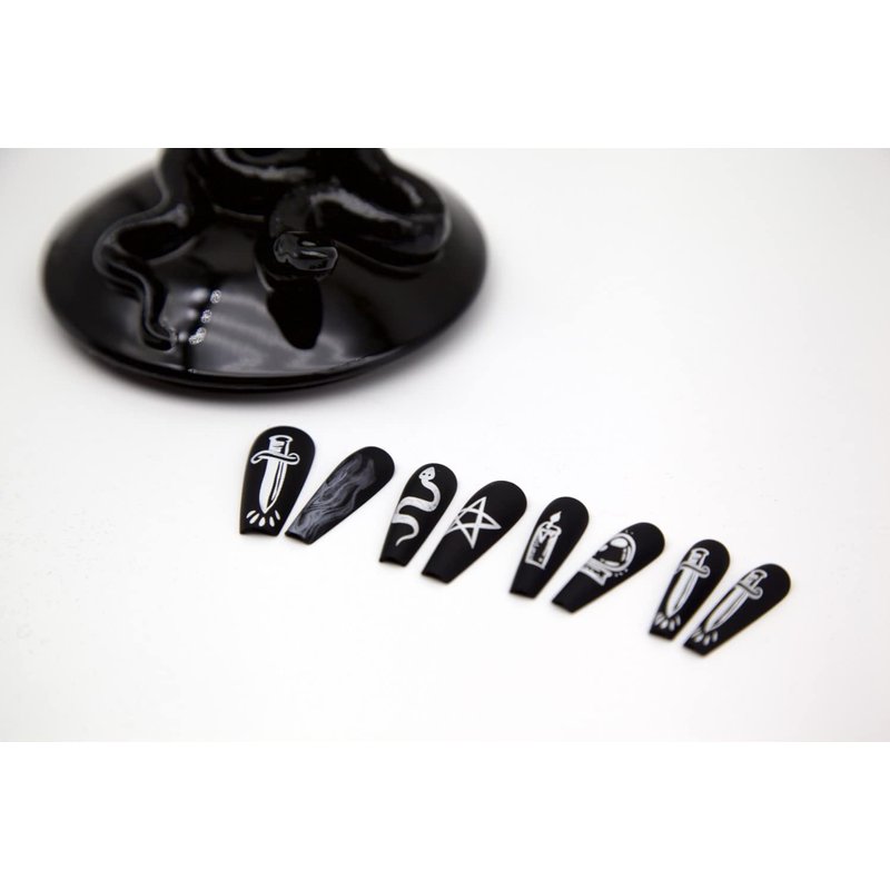 Unique designs of candles,stars, daggers,and snakes create a mysterious feeling. The package includes 24 nail tips in 12 different sizes,alcohol wipes,a nail file,24 jelly gaskets,and glue, ensuring you can find the most suitable nail tips for yourself.