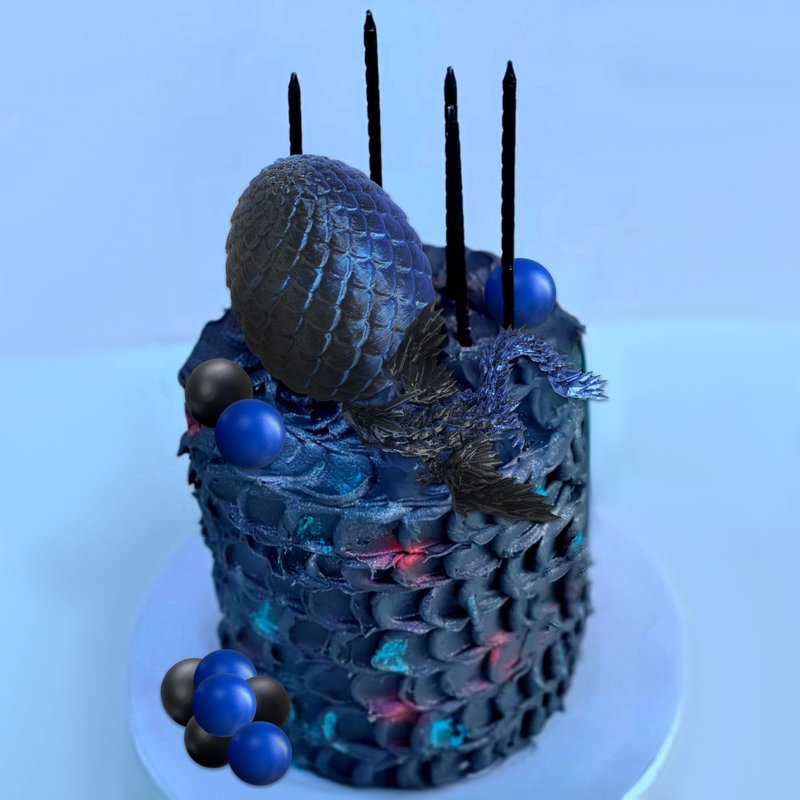 - Dragon Cake Topper: You will get 1X realistic dragon cake topper, 1 Xdragon egg cake topper, 5 Xblack cake balls ,5X blue cake balls to let your imagination run wild and fulfil your Diy cake decorating wishes!