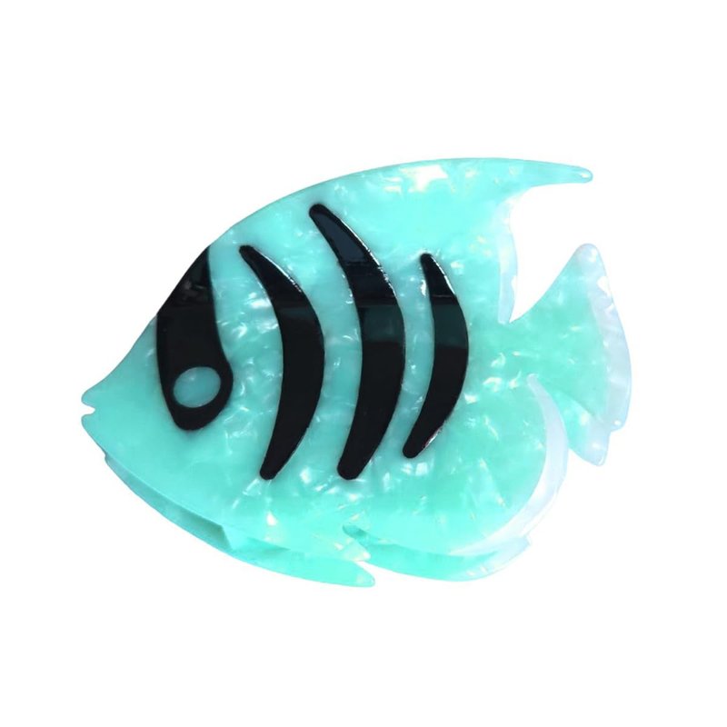 Fantasy Stripe Fish Hair Clip,Acetate Hair Clip,Big Claw Clip for Women,Cyan